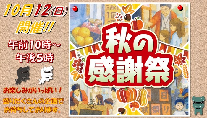 🌰秋祭り感謝祭のお知らせ🍄桐生店、館林店、富岡店にて、10月12日(日)午前10時~午後5時開催!